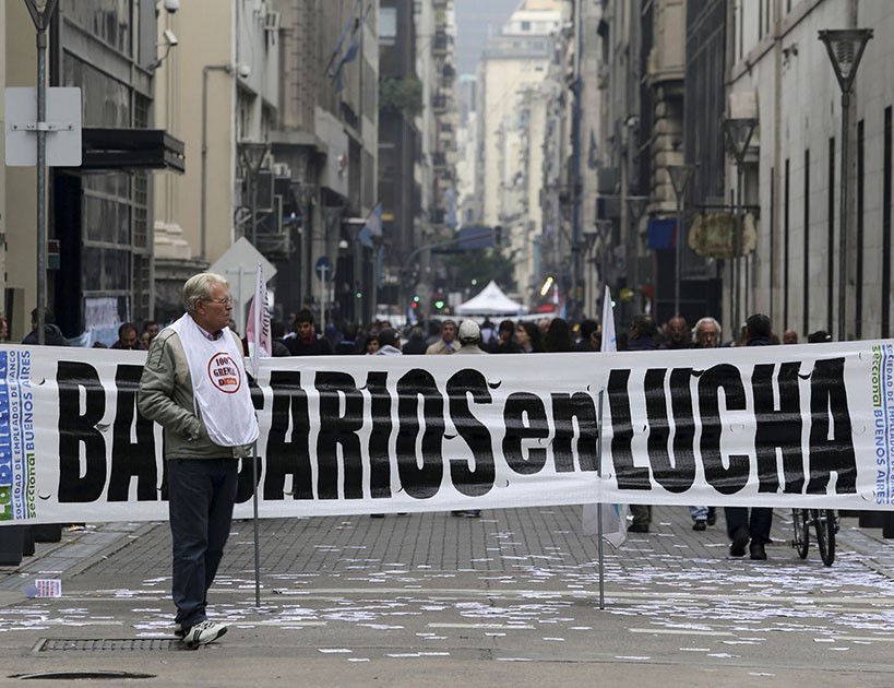 El viernes pasado, unos 165.000 trabajadores paralizaron el servicio de atención al público y el clearing de los bancos públicos y privados en toda la Argentina en rechazo a la propuesta salarial.
