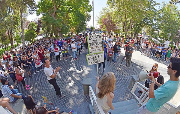 “Los estatales estamos cansados del discurso de este Gobierno. Que nos digan que no hay plata, que no haya propuesta seria. Nos quieren imponer la Megaminería. Estamos cansados, queremos una salida democrática, pero así no es. Queremos manifestar nuestro desacuerdo. Decir que no estamos bien. Nos tocó a todos llorar: ver a una empleada de salud descompensarse por una huelga de hambre, hambre que ya tenemos todos. Es el llanto de todos los estatales”.