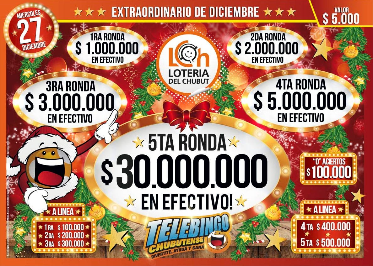Lotería del Chubut anunció que en el “Telebingo de Fin de Año” previsto para el 27 de diciembre próximo se pondrán en juego más de 42 millones de pesos.