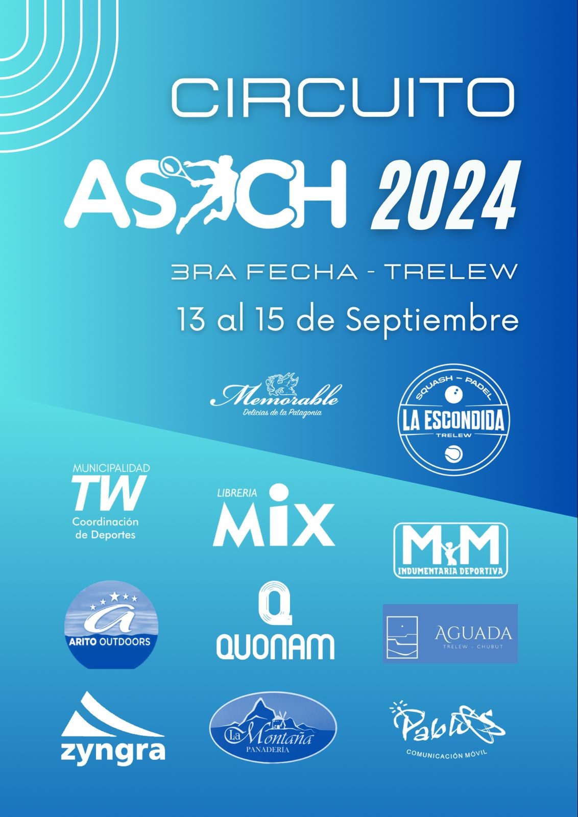 La tercera fecha del calendario de la Asociación de Squash del Chubut se cumplirá este fin de semana en el Club La Escondida para las categorías 1° a 5° Caballeros y Damas.