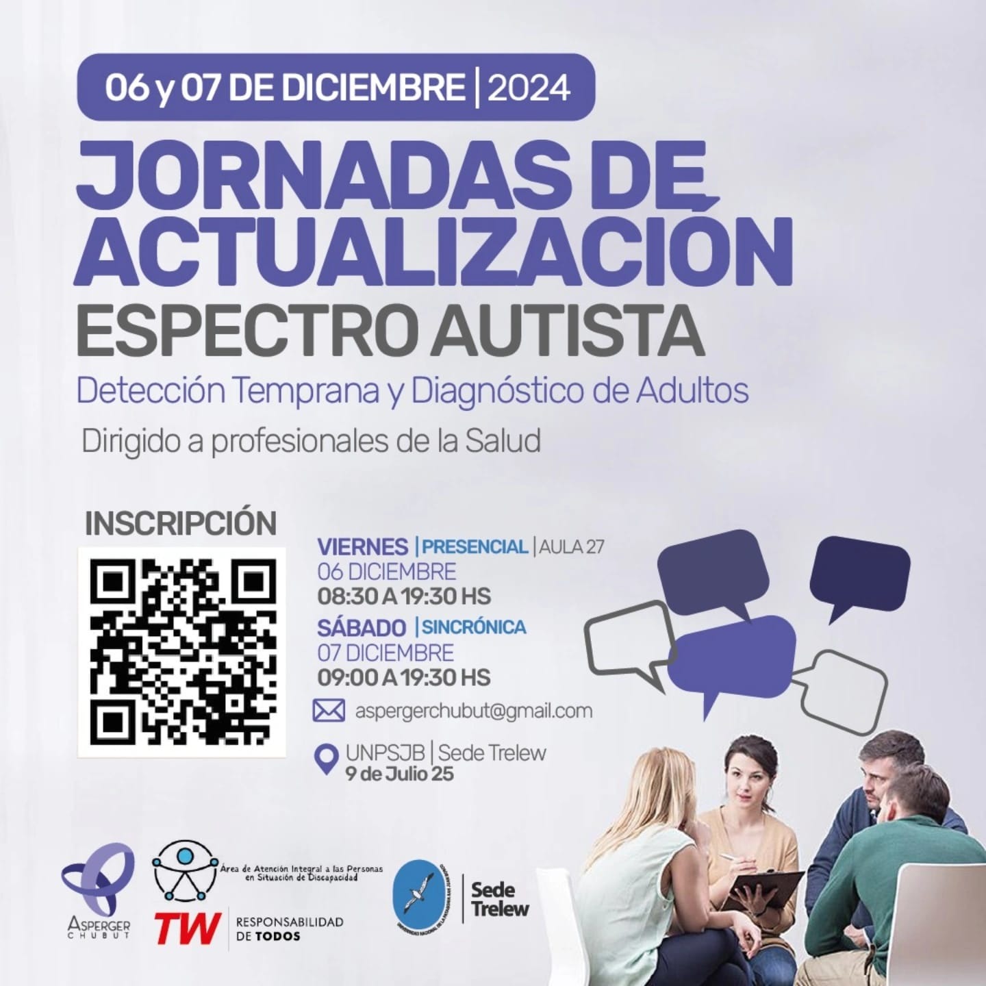D`Anna estará también este sábado con la misma temática pero en forma sincrónica de 9 a 19,30 horas. La organización está a cargo de Asperger Chubut, del Area de Atención Integral a las Personas en Situación de Discapacidad, Municipalidad de Trelew y la Universidad Nacional de la Patagonia San Juan Bosco, quien ofreció el espacio físico.