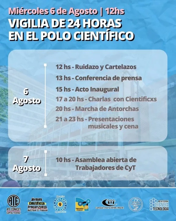 Según supo Noticias Argentinas, la medida de fuerza, impulsada por ATE y otras agrupaciones científicas, busca reclamar por mejoras salariales, el freno al ajuste presupuestario y la defensa de la ciencia pública.