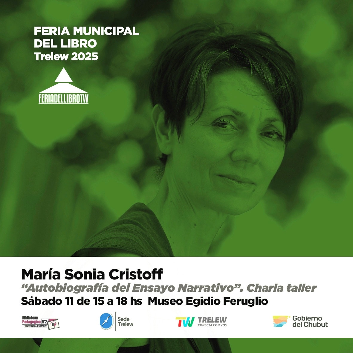 Una de las presencias más destacadas que tendrá la Feria del libro de Trelew será la de María Sonia Cristoff. La escritora que nació en Trelew (1965), es autora, traductora y profesora de la Maestría en Escritura Creativa en la Universidad Nacional Tres de Febrero y la Universidad Diego Portales, Santiago de Chile.