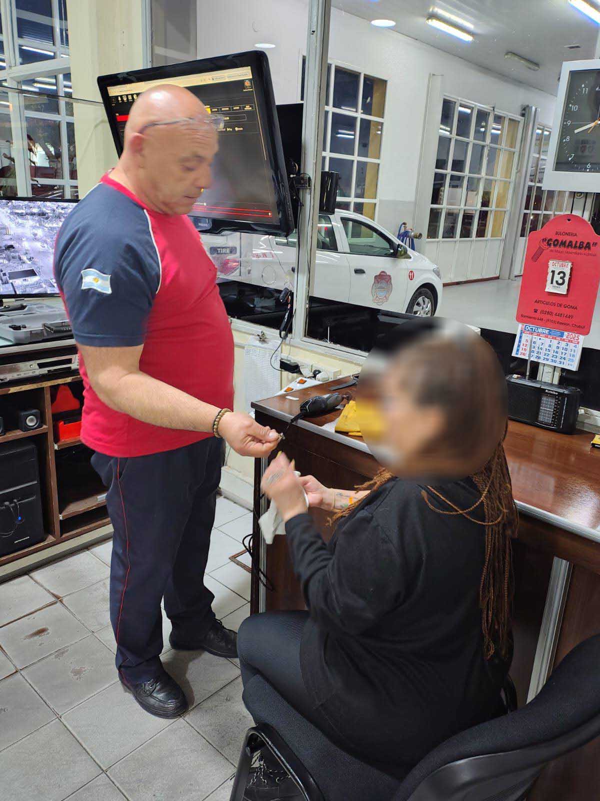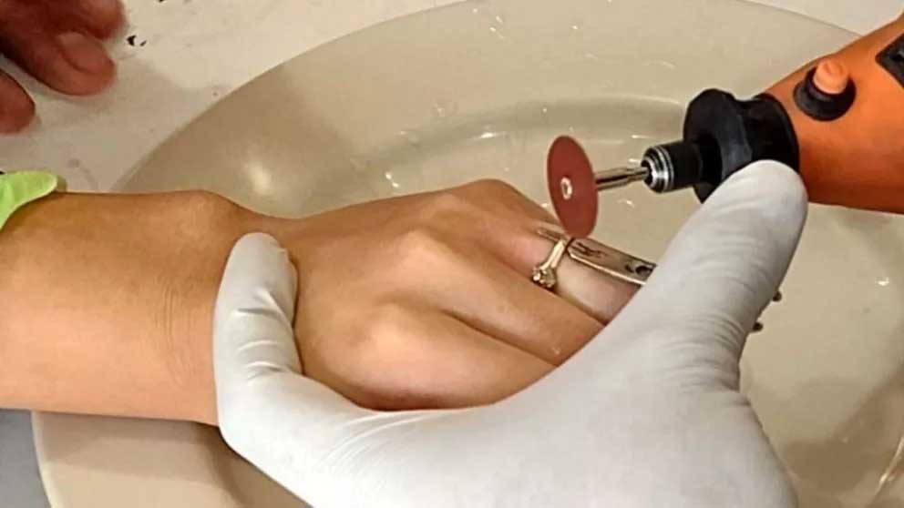 En el lugar fue atendida por el oficial inspector de guardia, Marcelo Revillot, quien, mediante maniobras con un minitorno, cortó y extrajo el anillo que aprisionaba el dedo de la compungida mujer.