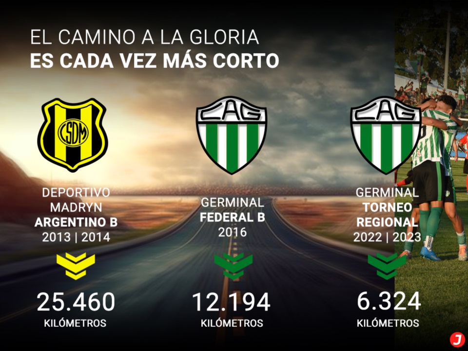 El campeón de la Patagonia saldrá de esta zona recién para jugar el partido que define el ascenso al Federal A. Con el viejo esquema, Deportivo Madryn hizo 25.460 kilómetros al ascender al Federal A en 2014. En 2023, Germinal recorrió 6.324 al ascender a la misma categoría.