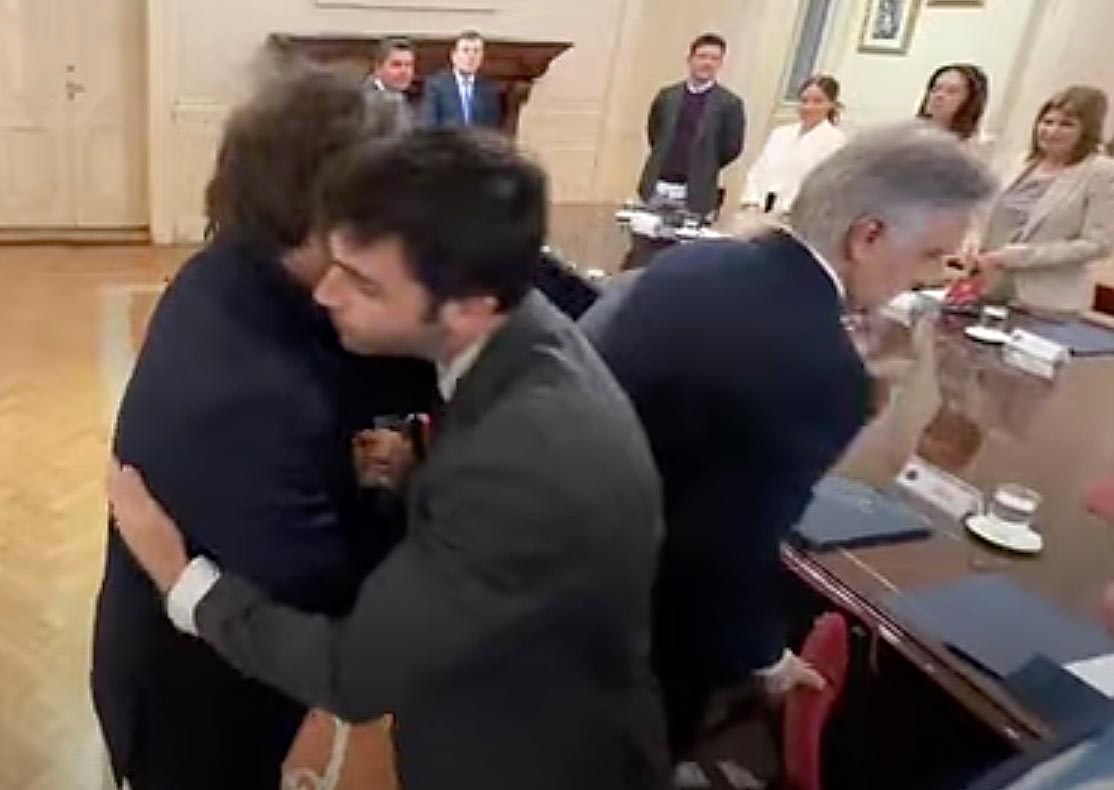 Con un gesto amable, Milei saludó uno por uno a los mandatarios presentes. En algunos casos, se lo vio muy amigable, como el caso de su aliado entrerriano, el gobernador Rogelio Frigerio. Inclusive, se abrazó con Jorge Macri, el jefe de Gobierno porteño, a quien hace poco no saludó adrede en un acto oficial.