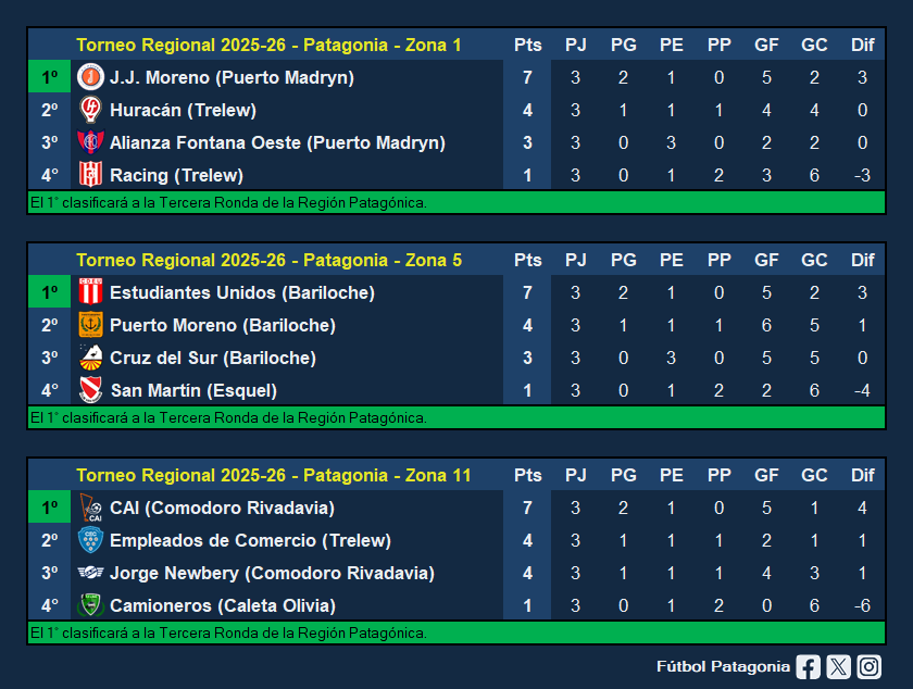 Por la Zona 5, San Martín de Esquel fue goleado 3-0 por Puerto Moreno y quedó último en su grupo. El "Rojo" visitará a Estudiantes Unidos de Bariloche en la cuarta fecha.