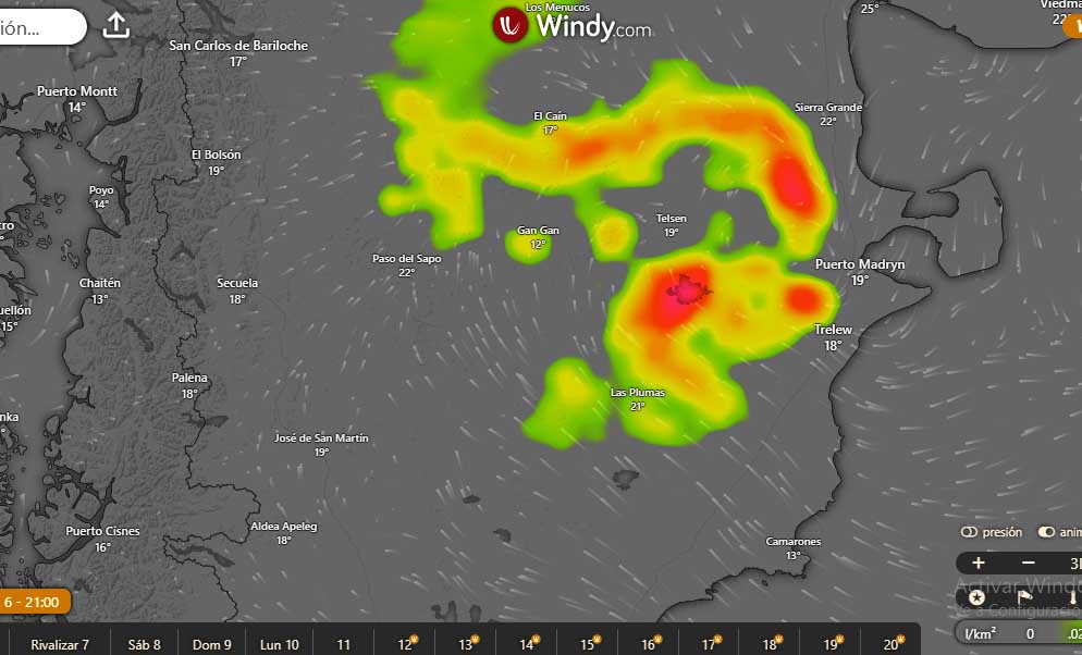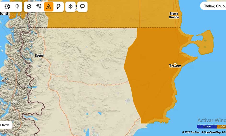 El área será afectada por tormentas será la zona centro-este de la provincia de Chubut, algunas localmente fuertes.