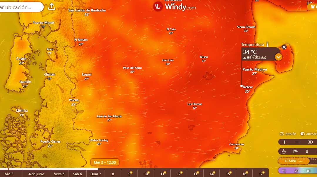 Para este domingo, en la zona del Valle de Chubut, se aguarda que la térmica escale hasta los 37º C, con fluctuaciones térmicas en distintas partes de la provincia, pero que ninguna bajará de los 30º C.