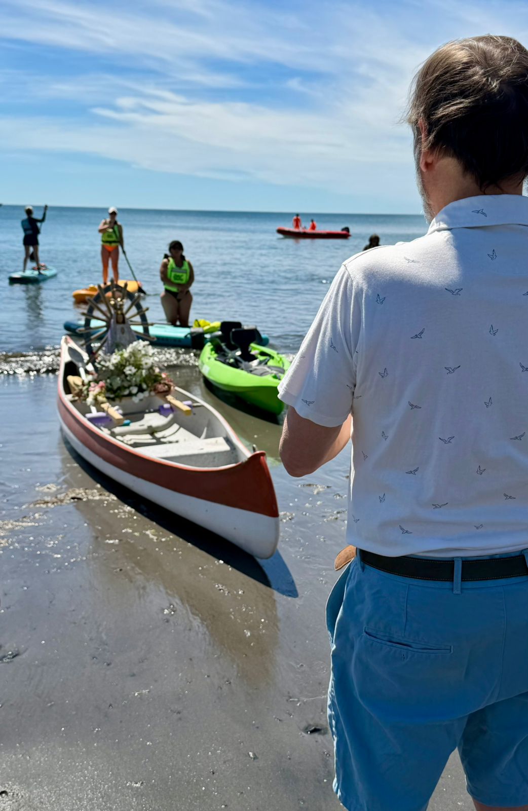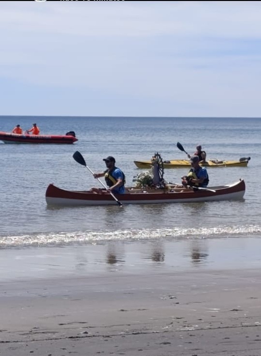 La actividad contó con una importante presencia de kayakistas que se sumaron a la procesión, así como otro número de vecinos y vecinas que siguieron desde la costa.