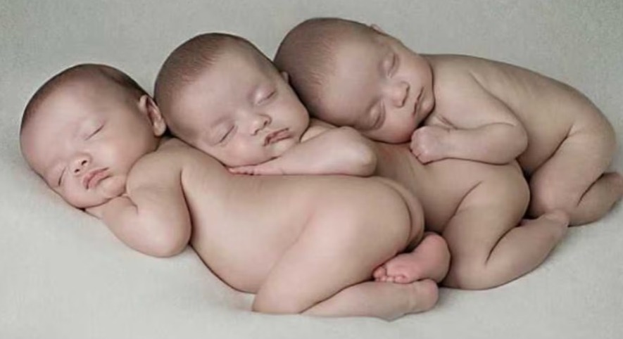 Sucede cuando un espermatozoide fecunda un óvulo y se divide en tres embriones. La denominación médica que recibe es tirgemelas monocoriales triamnóticas -trillizas idénticas-.