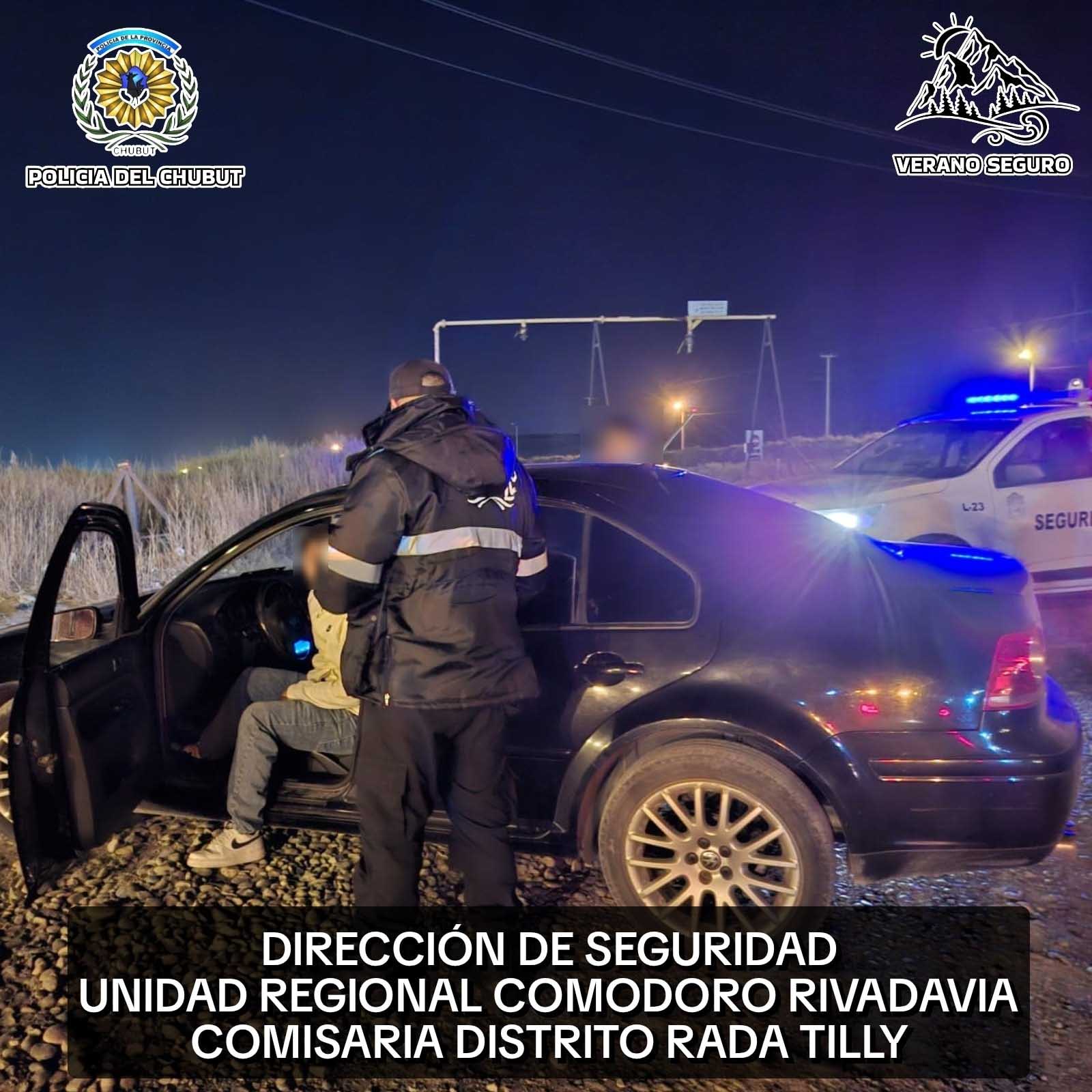 Este 1 de enero a las 03:34 de la madrugada, personal policial de la Comisaría Distrito Rada Tilly que realizaba control de tránsito, pudo observar como un vehículo Volkswagen Bora, negro, intentó evadir el retén, siendo interceptado a 100 metros del lugar por personal de la Guardia Urbana.