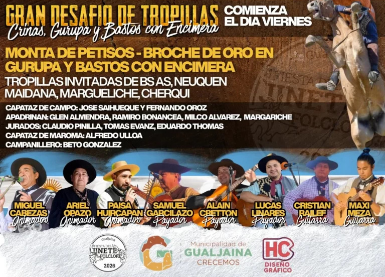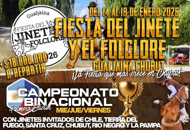 La localidad de Gualjaina se prepara para vivir uno de los eventos más importantes de su calendario cultural: la Fiesta del Jinete y el Folclore, que se desarrollará del miércoles 14 al domingo 18 de enero de 2026. Se trata de la cuarta edición de una celebración que, año a año, crece en convocatoria, infraestructura y propuestas, consolidándose como la fiesta popular que más crece en la provincia de Chubut.
