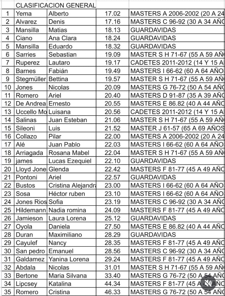 MIRÁ LA CLASIFICACIÓN COMPLETA