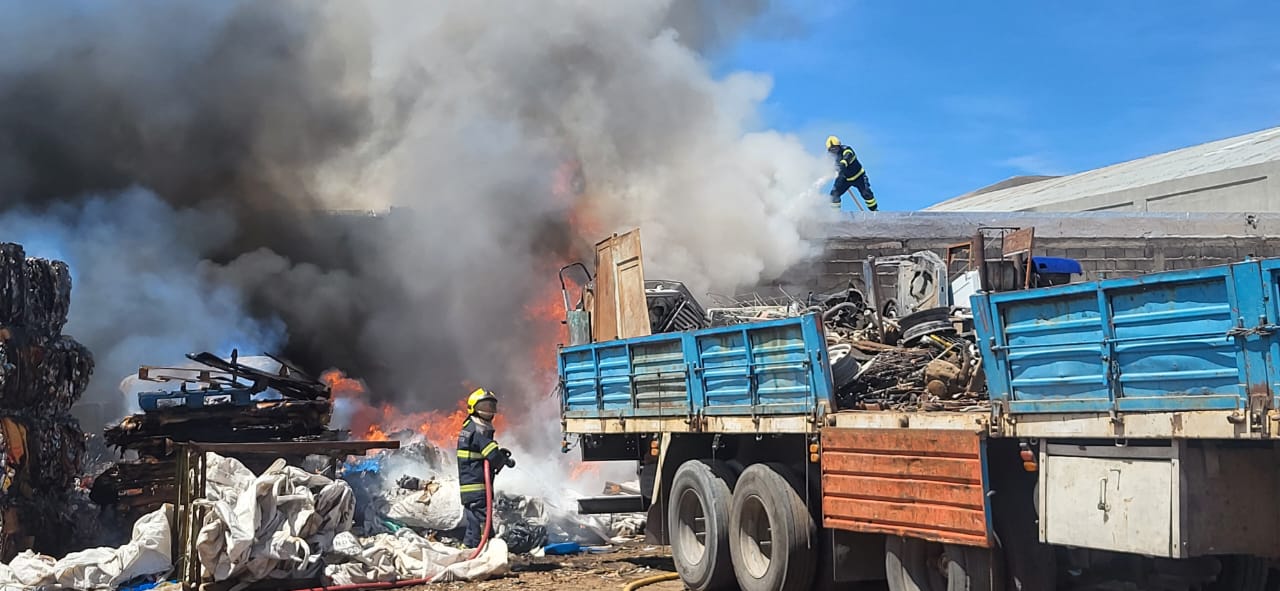 El incendio se desató en una chatarrería de Trelew ubicada en Ingeniero Fennen casi Galina, frente a avenida Eva Perón. Cuatro dotaciones de Bomberos Voluntarios trabajan en el lugar para contener el incendio, las llamas sobrepasan los altos paredones.