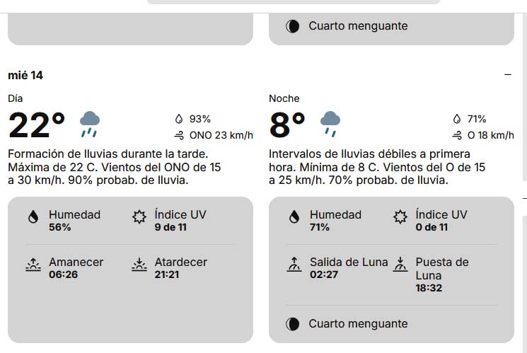 Desde el oeste llegará una nueva masa de aire frío y húmedo que traerá lluvias desde primeras horas de la tarde que se extenderá hasta la noche.