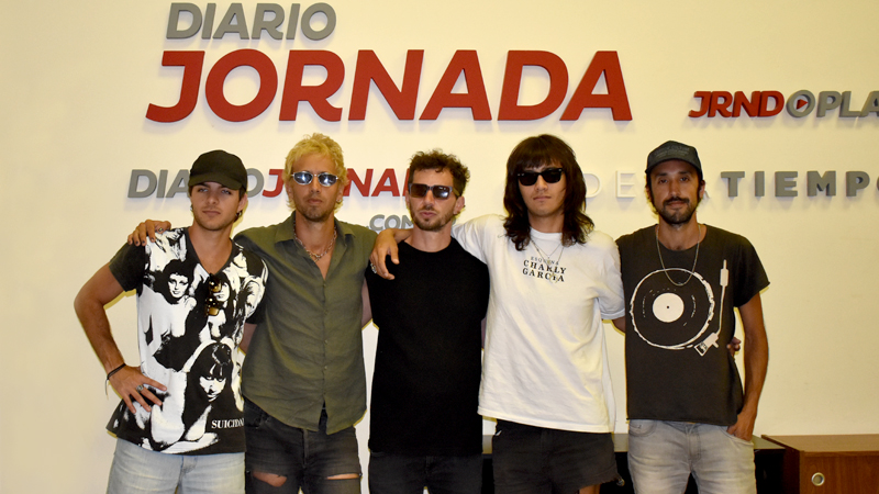 Llegaron a la cita los integrantes de la banda rock/pop formada en 2020 por los hermanos Juan Ignacio (voz/guitarra, ex-futbolista) y Danilo Antonio (bajista). Luca lancuba (guitarra), Coco Nieto (guitarra), Daniel Giordano (batería) y Lautaro Rocha (fotógrafo y community manager).