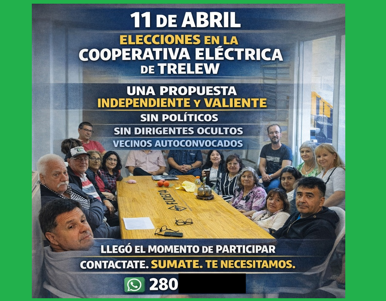 ¿Oculto? Sí, Ramón mandó un comunicado con foto en el que se puede leer: “Una propuesta independiente y valiente. Sin políticos, sin dirigentes ocultos”. Lo curioso es que en la imagen se ven las caras de muchos asociados a la Cooperativa de Trelew pero justo detrás de la frase “dirigentes ocultos”, se oculta el rostro de dos personas: una de ellas es José María Ramón.