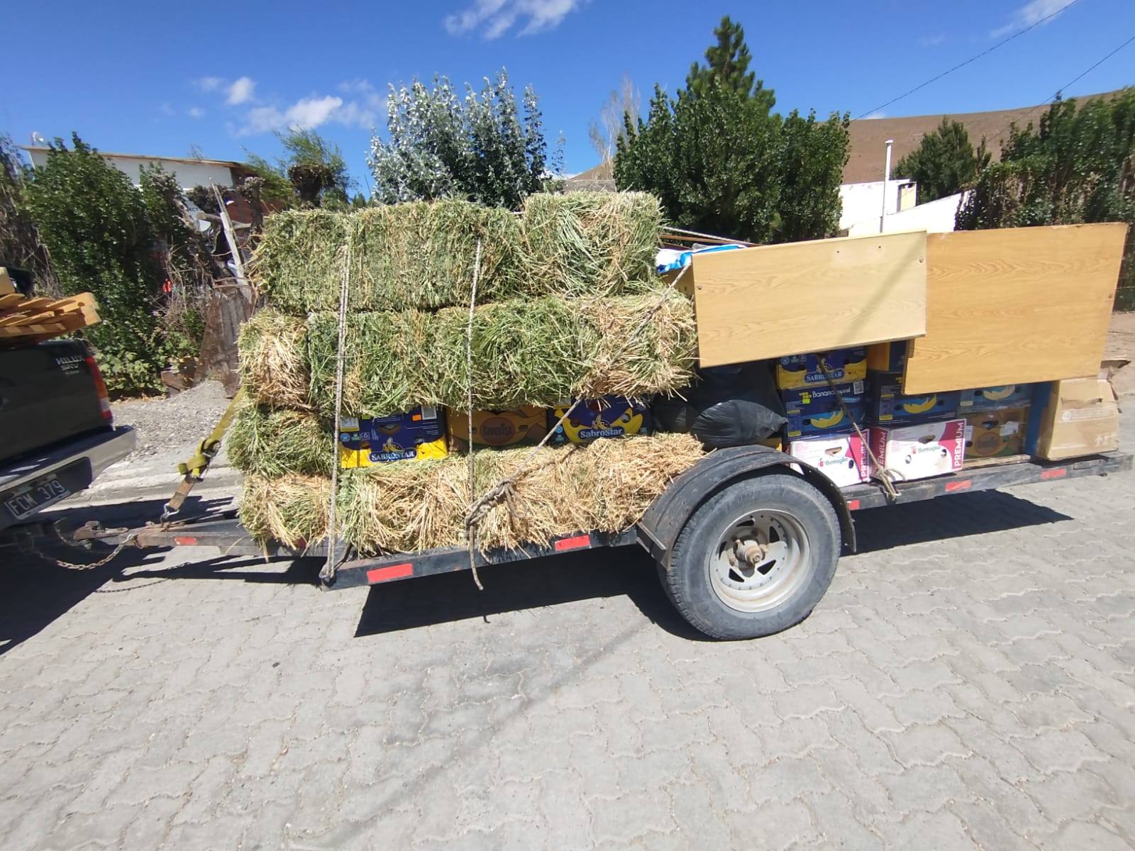 Luego de dos semanas de colecta y un evento solidario que incluyó almuerzo para los vecinos, Lucas Sánchez viajó de Trelew a Cholila a entregar donaciones. Fue con su camioneta y un tráiler enganchado, colmados de pastura, ropa, muebles y alimentos para quienes perdieron todo con los incendios.