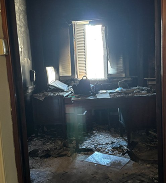 Según las primeras informaciones, el incendio se habría originado a partir de una pava eléctrica que quedó enchufada dentro del despacho.