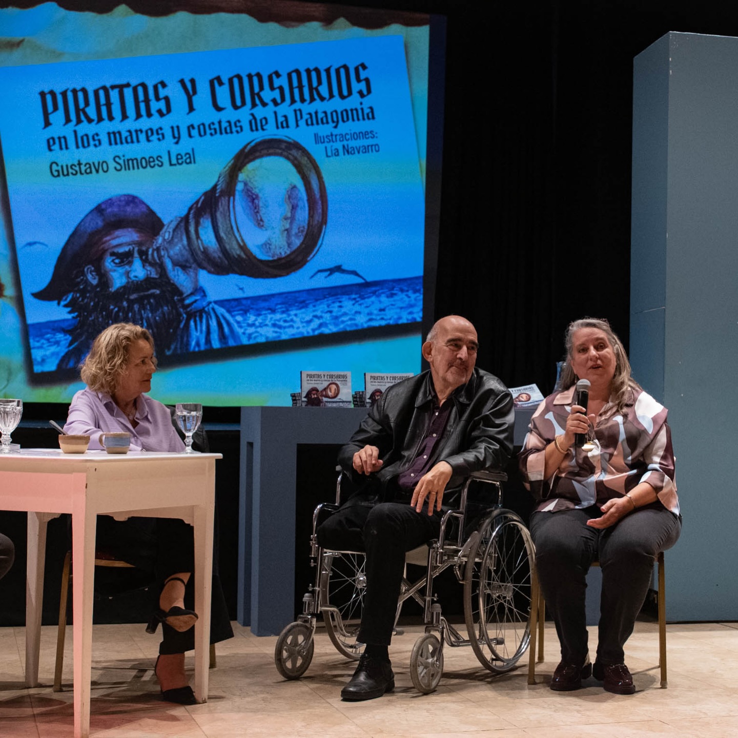 A sala llena se presentó en el Centro Cultural Rada Tilly el libro “Piratas y corsarios en los mares y costas de la Patagonia”, del investigador patagónico Gustavo Simoes Leal, con ilustraciones de Lía Navarro.