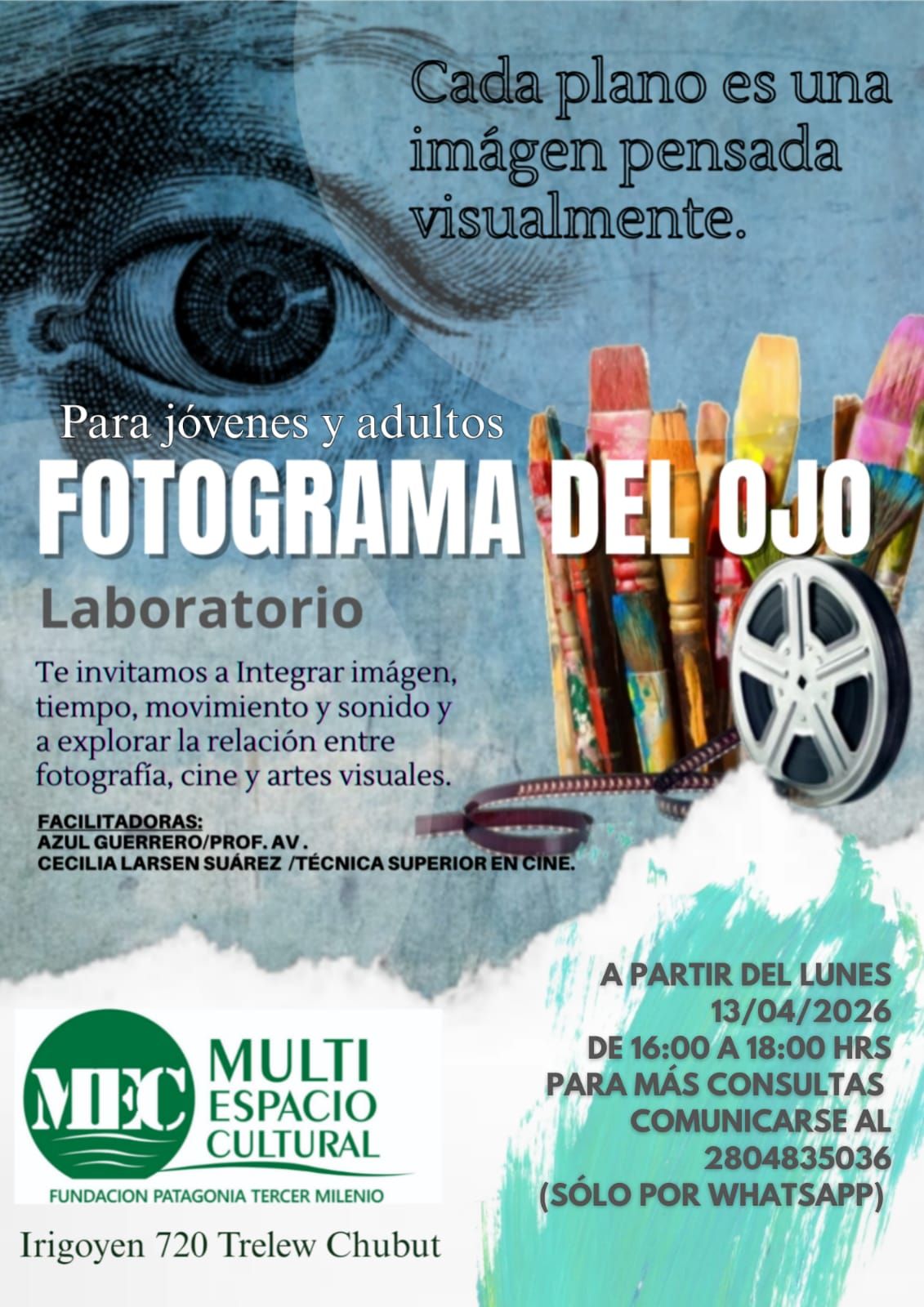 Se trata del Laboratorio “Fotograma del ojo” destinados a jóvenes y adultos. La actividad se iniciará el lunes 13 de abril de 16 a 18 hs. en la sede del MEC (Av. Hipólito Yrigoyen 720).