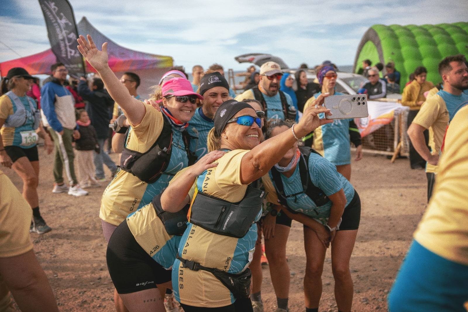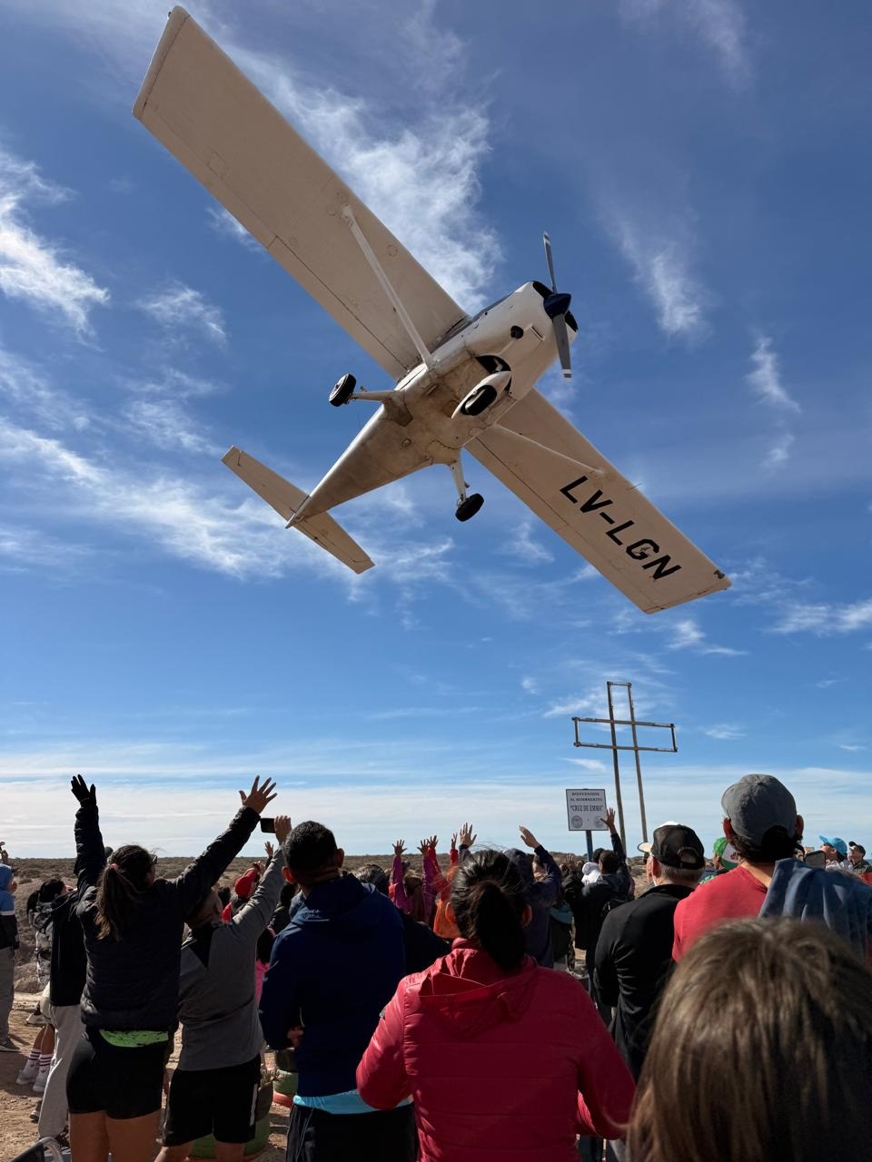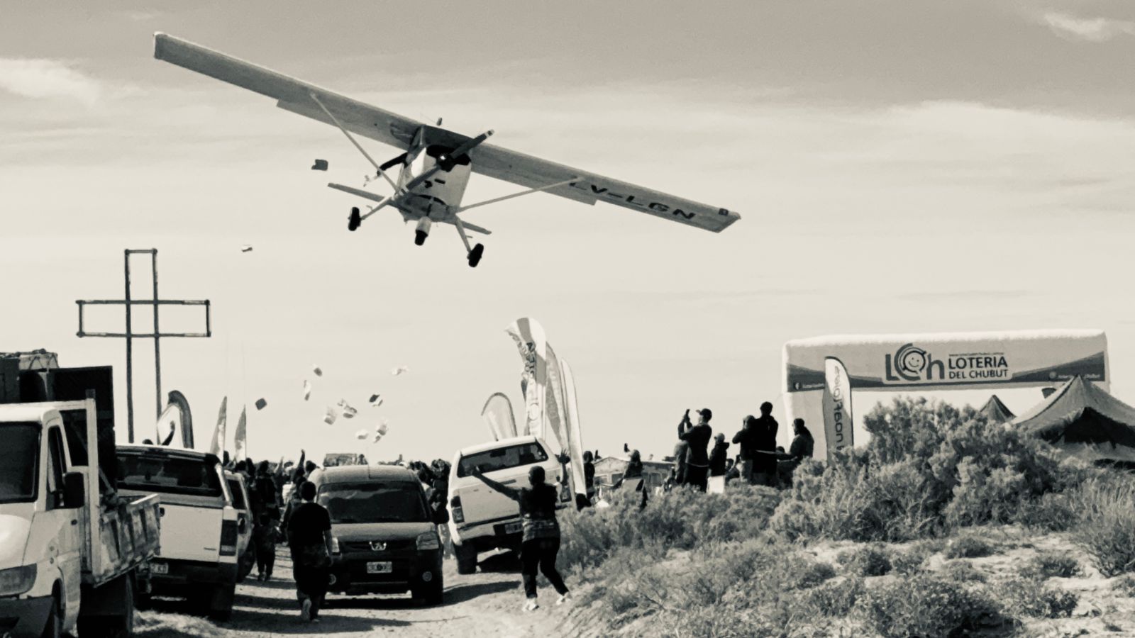 El hecho inusual, más allá del semejante despliegue organizativo en un paisaje privilegiado de la costa chubutense, fue el avión del Aeroclub Rawson que sobrevoló de manera razante y cuidada antes de largada y arrojó obsequios a los competidores.