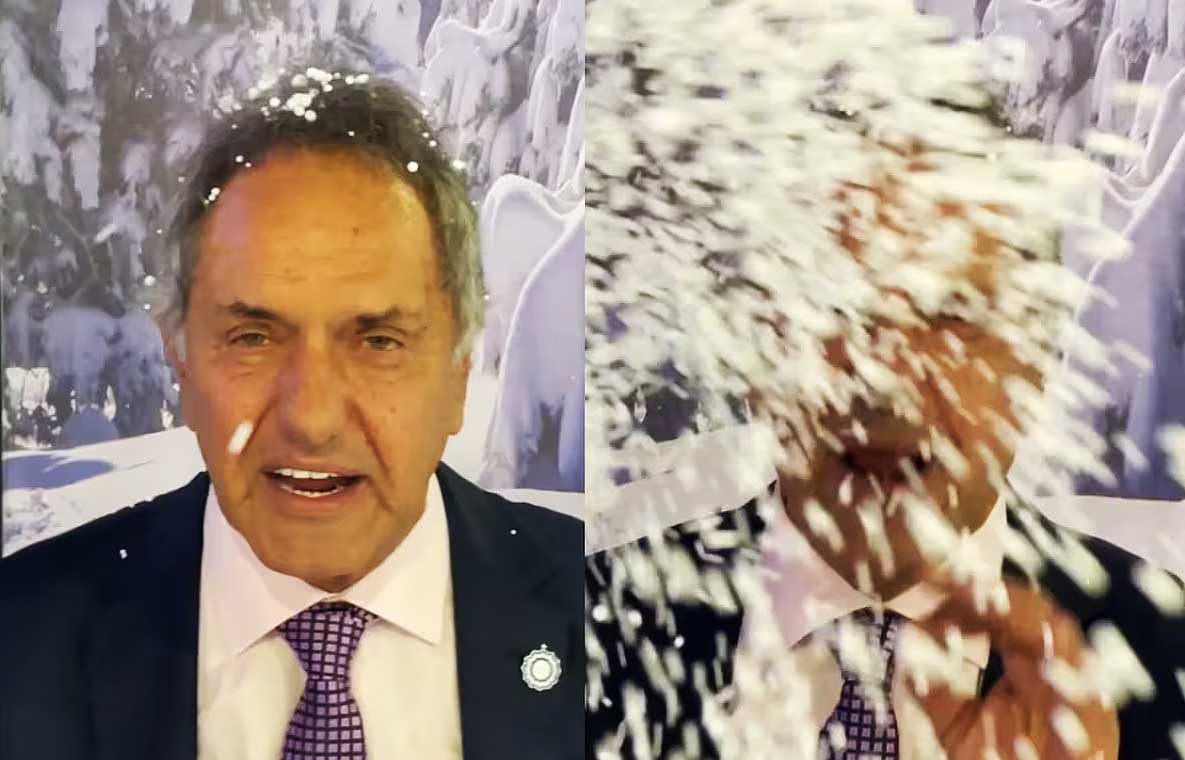En el video, el secretario de Turismo y Ambiente de la Nación promociona los destinos de nieve argentinos asegurando que estarán "colmados de familias brasileras". Sin embargo, el detalle que captó la atención de los usuarios fue el uso de bolitas de telgopor arrojadas a su cara para simular el efecto de la nieve mientras grababa el mensaje.