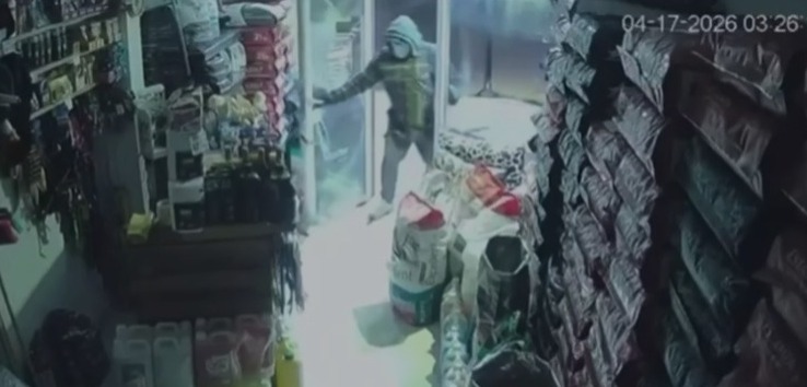 Este viernes a la madrugada luego de las 3, un hombre encapuchado y con el rostro tapado robó de una forrajería una caja registradora y una balanza. Quedó registrado. Sucedió en calle Muster al 1300 de Trelew.