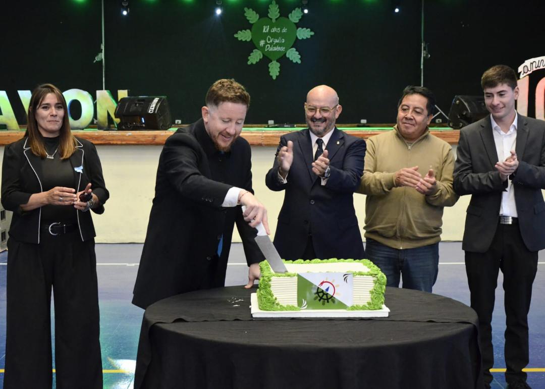 Los festejos continuaron luego en el Gimnasio Municipal, donde se llevó a cabo el tradicional corte de torta, reconocimientos a vecinos destacados y un almuerzo popular con guiso elaborado por el chef Franco Pérez junto a los estudiantes de la Escuela Culinaria de Trelew. La jornada incluyó además presentaciones artísticas de “Todos Podemos Danzar”, “Aromas de Tango” y el cierre a cargo del Ballet “Amancay”.