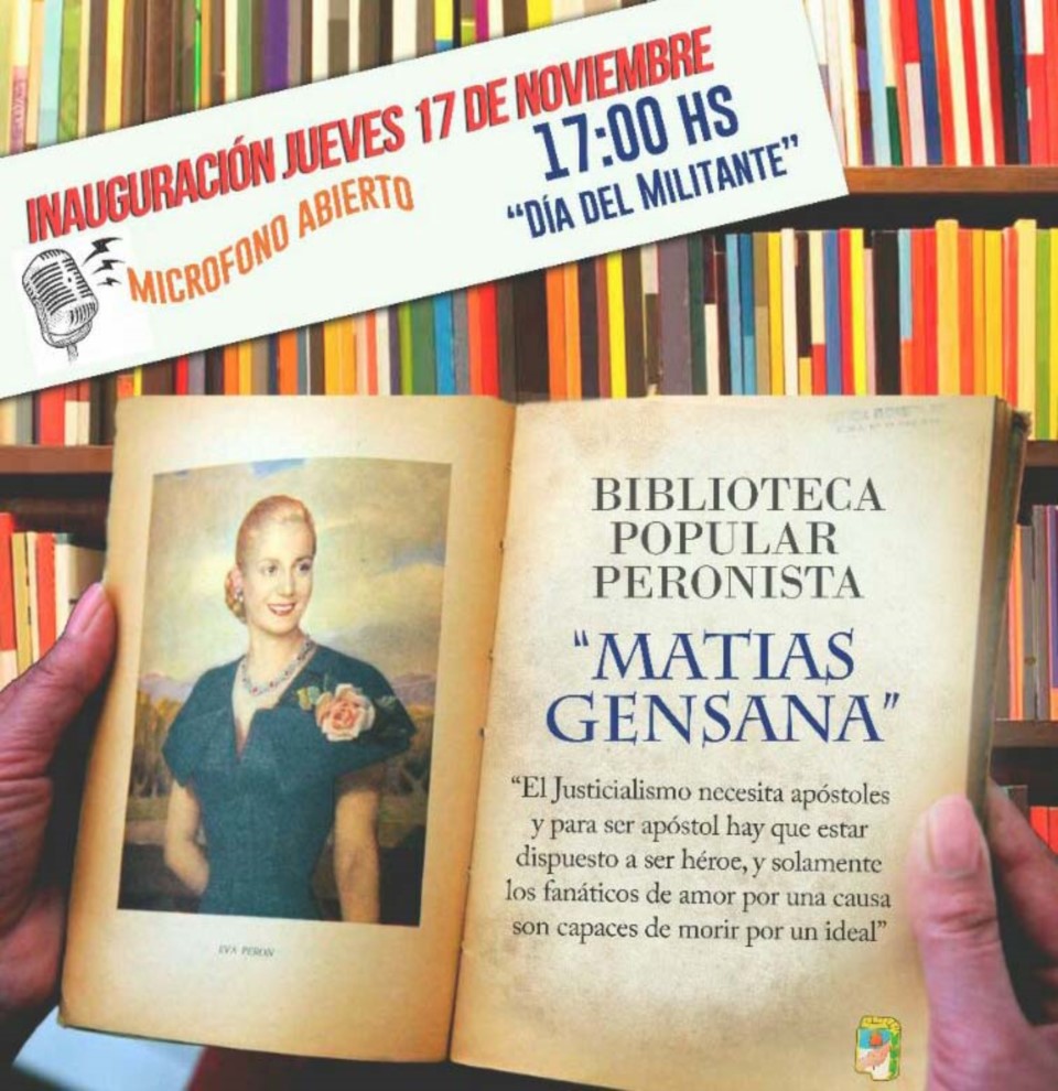Al respecto, informan que “la fundación de esta biblioteca sienta las bases para un futuro Centro de Estudios Justicialista, buscamos capacitar a los nuevos cuadros políticos peronistas de nuestra localidad y de toda la provincia”.