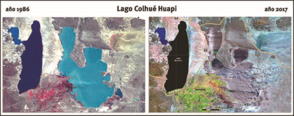 El informe indica, por ejemplo, que en 1996 la superficie estimada para el lago Colhué Huapi era de 55.312 hectáreas pero que cuatro años después, en el 2000, apenas tenía 25.654 hectáreas. Pero los periodos húmedos que vinieron después hicieron que recuperara el nivel y llegara a las 76.978 hectáreas en 2006 y descendiera nuevamente con un mínimo de 19.845 hectáreas en 2015. En los últimos meses el problema se agudizó y en la actualidad ha quedado literalmente seco.