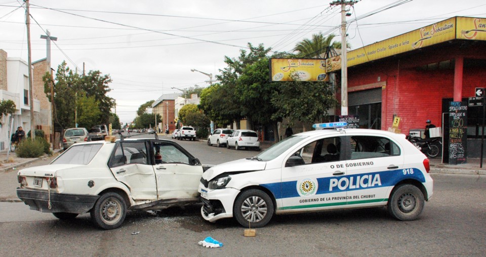 Un accidente entre un móvil policial y un vehículo particular causó cuatro heridos, entre ellos un civil y tres uniformados. Ocurrió en la intersección de las calles 25 de Mayo y Buenos Aires de Trelew, cuando el Volkswagen Gol en el que se movilizaban tres efectivos de la fuerza chocó contra el lateral de un vehículo Volkswagen Gacel, en una zona lindera al barrio Centro.