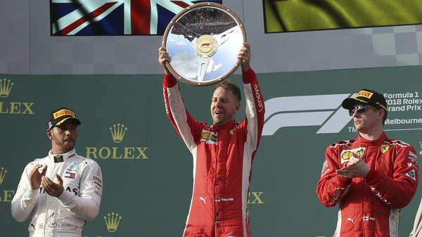 Posiciones del Campeonato de Pilotos: Vettel, 25 puntos; Hamilton, 18; Raikkonen, 15; Ricciardo, 12; Alonso, 10; Verstappen, 8; Hülkenberg, 6; Bottas, 4; Vandoorne, 2 y Sainz 1.