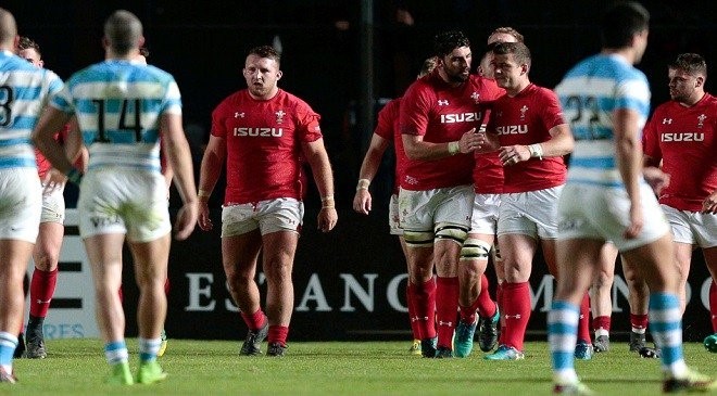 Tantos en el segundo tiempo: 1' penal Patchell (G), 11' penal Patchell (G), 16' try Amos (G) y 40' try Montoya convertido por Sánchez (A). Resultado final: Argentina 12- Gales 30.
