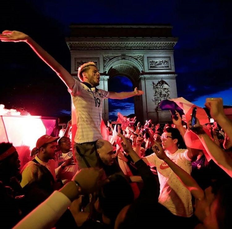 El gol decisivo de Samuel Umtiti en el minuto 51 provocó la locura de un mar de tricolores, partidarios extasiados que besaron los colores nacionales, se abrazaron y bailaron.