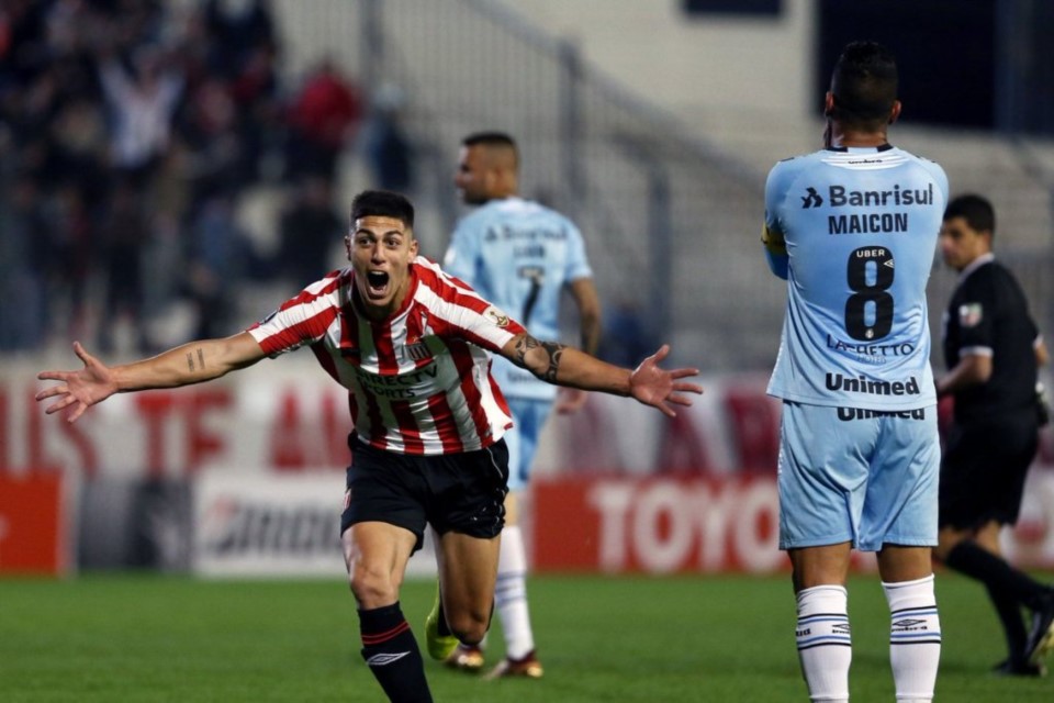 La presión de Estudiantes complicó a Gremio en la primera media hora, porque el conjunto brasileño intentaba jugar en una cancha en la que las dimensiones no lo ayudaban.