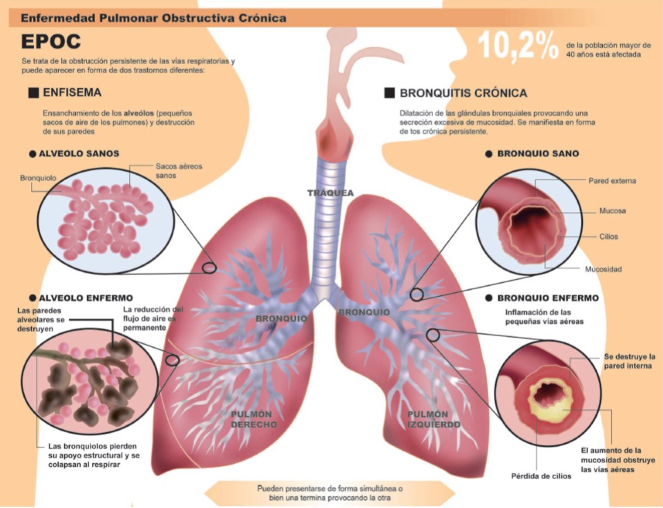 La EPOC es una afección del pulmón que dificulta la respiración y provoca la falta de aire, generando serios límites en la actividad física y la calidad de vida de los pacientes.