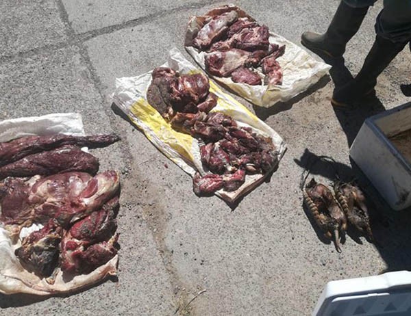 Según se informó, el coche contenía rifles y municiones del calibre 22, con lo que se presume usaron ese bajo calibre para matar a los camélidos.