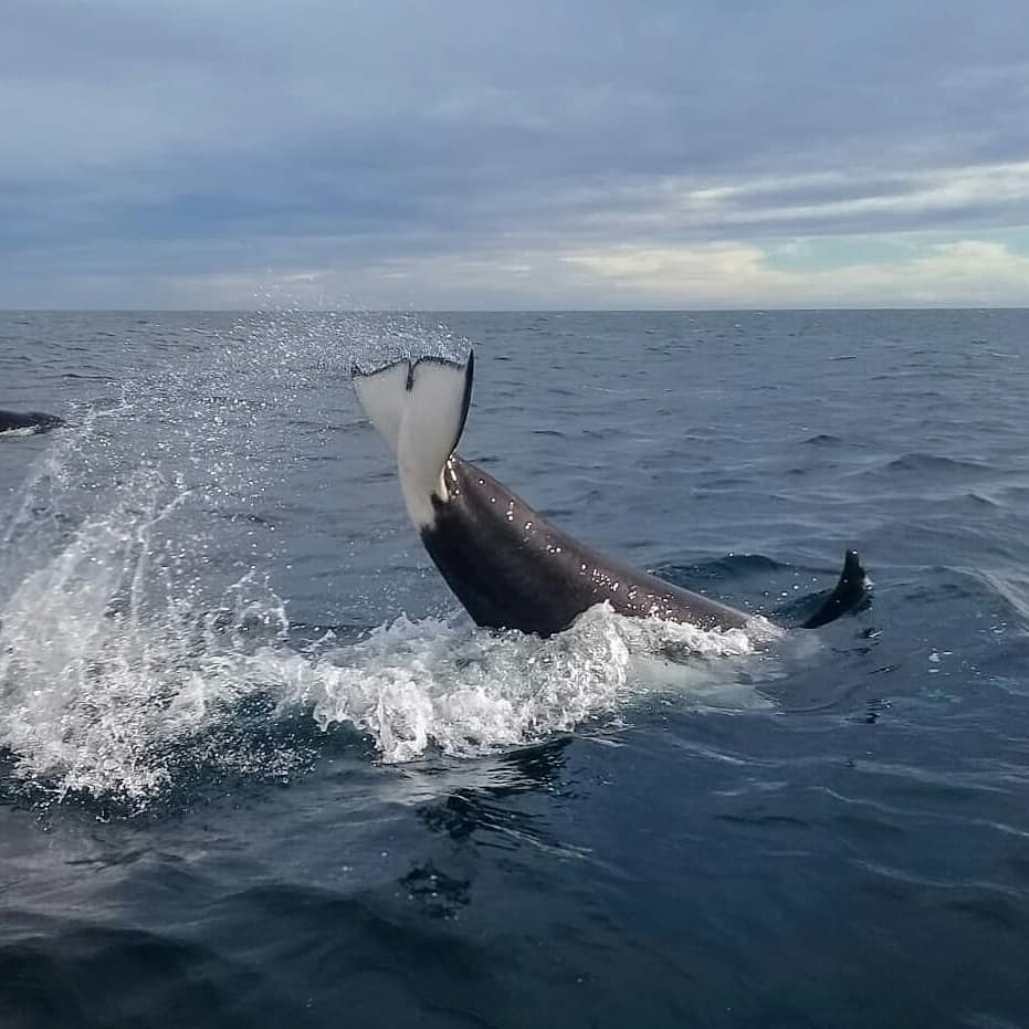 Una de esas embarcaciones se topó con las orcas y realizó imágenes que no son tan usuales en esa zona de Península Valdés.