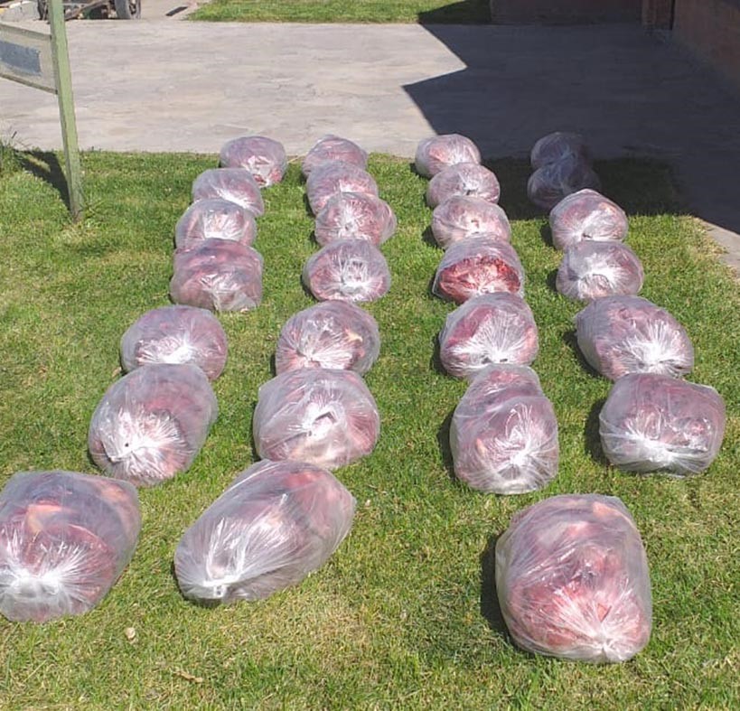 En total fueron secuestrados más de 800 kilos de guanaco, separados en 27 bolsas grandes.