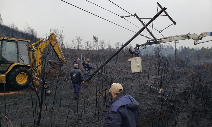 Trabajadores de la Dirección General de Servicio Públicos de Chubut lograron reponer anoche el servicio de energía en al menos dos de las localidades afectadas por los incendios: Epuyén y Cholila.
