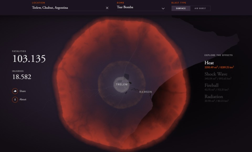 Ahora, una página web calcula la distancia que se necesita para sobrevivir a una explosión nuclear en caso de que afecte a tu ciudad.