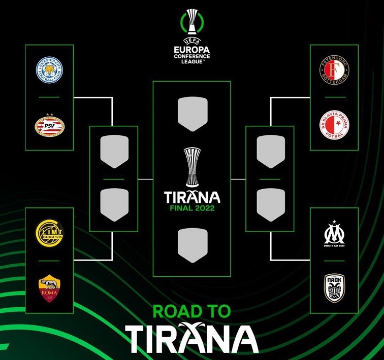 En semifinales jugarán el ganador de Roma-BodoGlimt ante Leicester City o PSV y el triunfador de Feyenoord-Slavia Praga contra Marsella-PAOK.