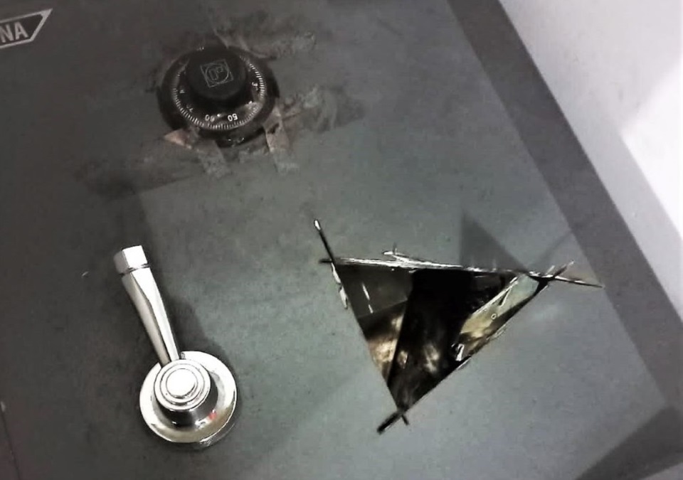 Una vez adentro y valiéndose de una amoladora, produjeron un corte en la puerta de una caja fuerte y sustrajeron el dinero en pesos y dólares, para luego escapar por el mismo lugar por donde habían ingresado.