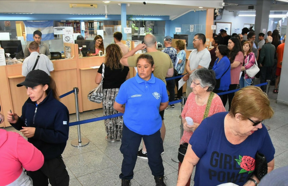 El martes por la mañana se advirtió una larga fila de contribuyentes en el sector “Rentas” de la Municipalidad de Trelew, que querían acceder al pago anual adelantado 2023.