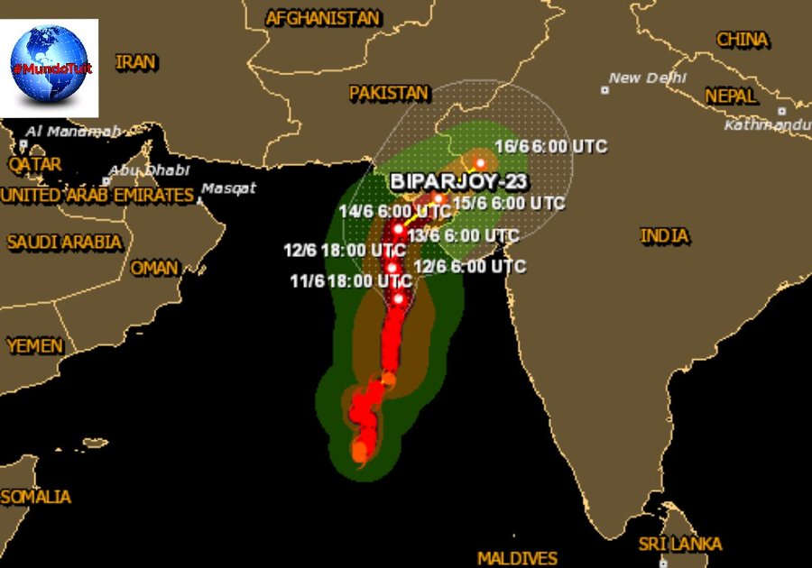 Here is the projected trajectory of cyclone Biparjoy. #CycloneAlert #CycloneBiparjoy #Storm pic.twitter.com/HhrhK0Z4zh