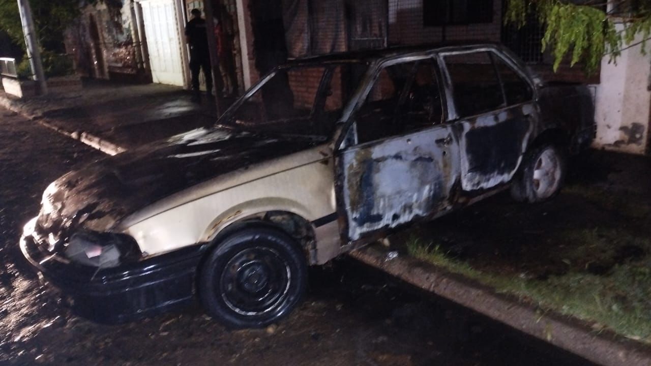 Las llamas del incendio generado por autores desconocidos, se generalizaron por la totalidad del rodado marca Chevrolet Monza, provocando severos daños.