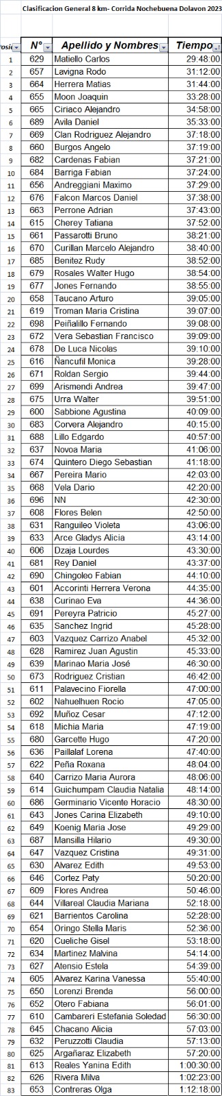 CLASIFICACIONES GENERALES - 8 KILÓMETROS
