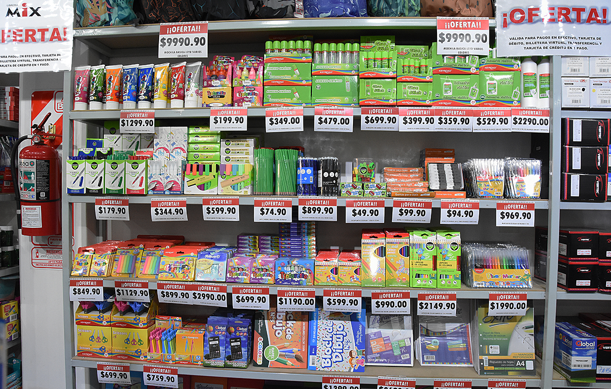 Entre los artículos en oferta hay “repuestos escolares de 480 hojas, muy importante para la familia; cuadernos, biromes, marcadores escolares, lápices, adhesivos vinílicos y sintéticos, carpetas. Todo el espectro que te puedas imaginar dentro de la canasta escolar básica”.